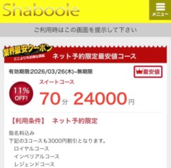 ※但し、本指名、50分コース除く、その他イベント併用不可